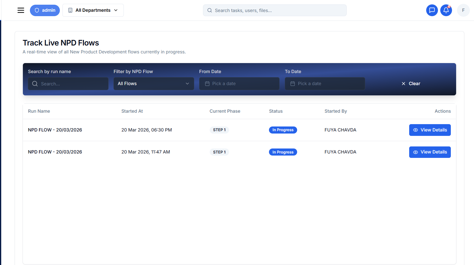 Onboard your departments, automate your NPD workflows, and manage your entire production cleanly from day one.