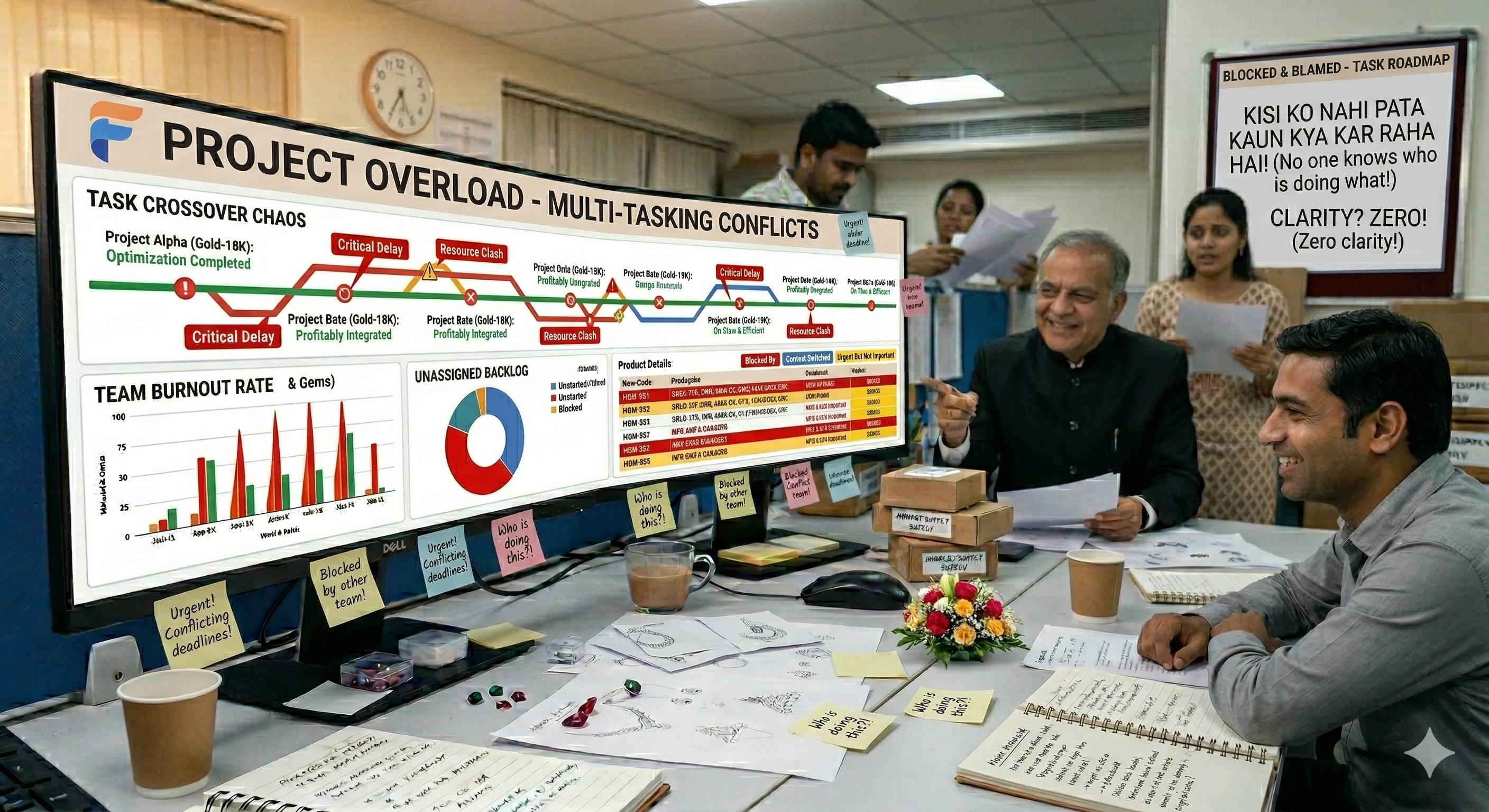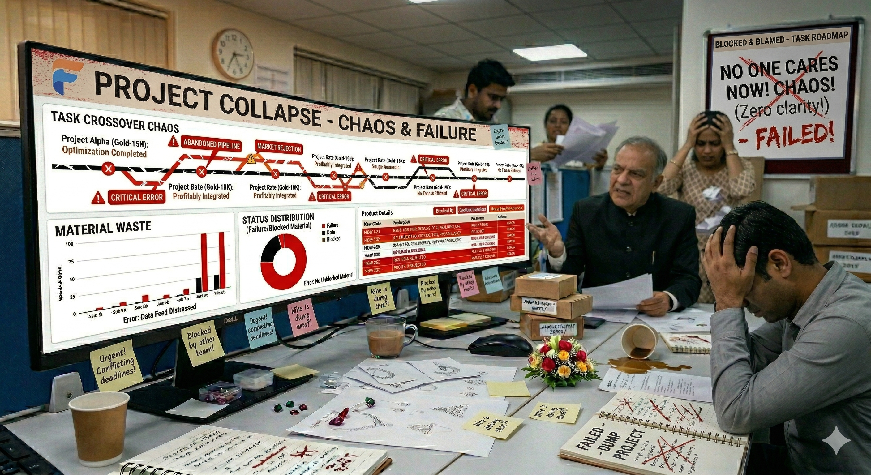 Teams rely on verbal updates, calls, and messages to understand status — leading to confusion, delays, and missed deadlines.
