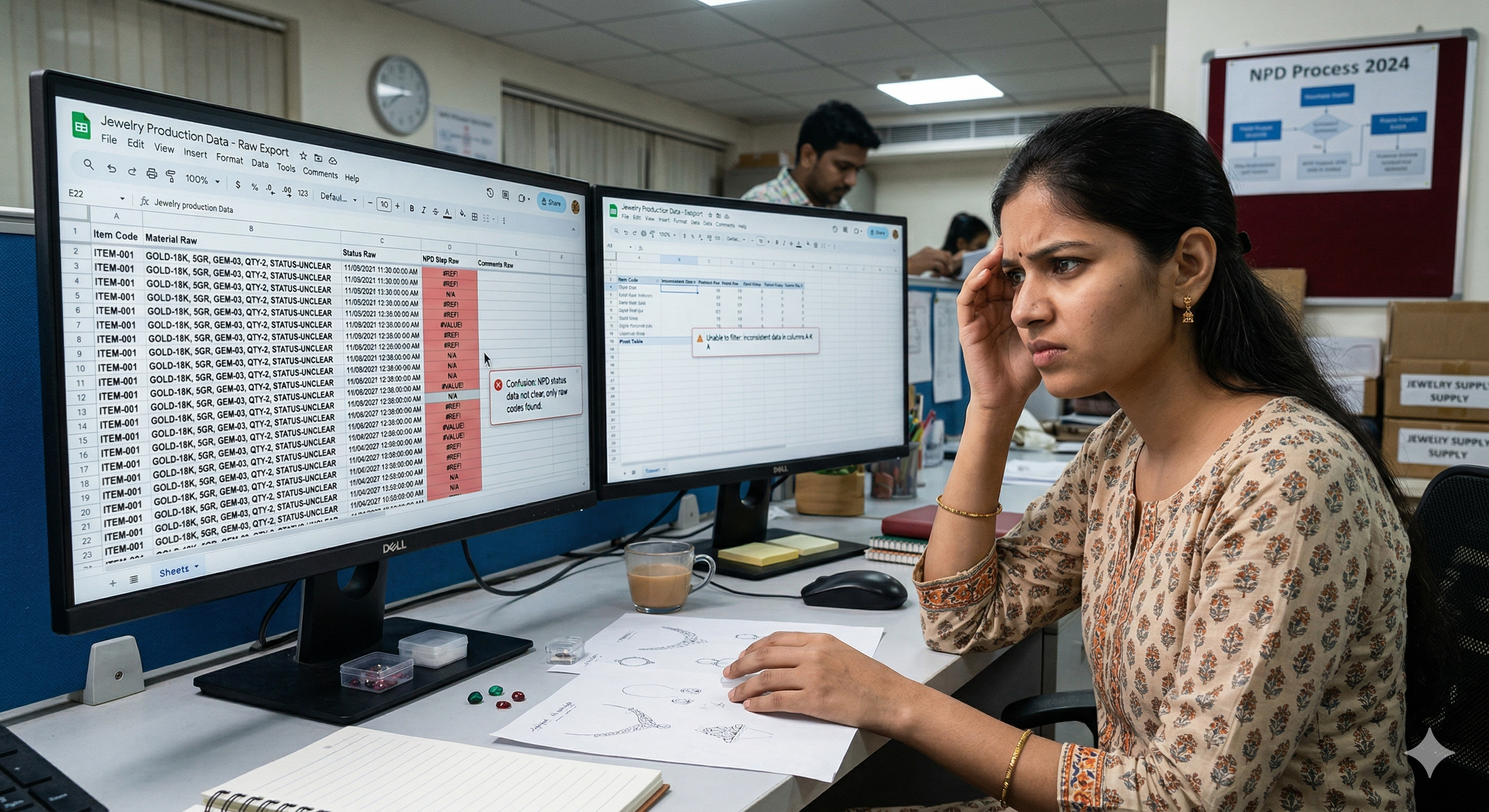 Jewellery businesses still depend on Google Sheets, Excel files, and manual entries. Data is scattered across multiple places with no single source of truth.
