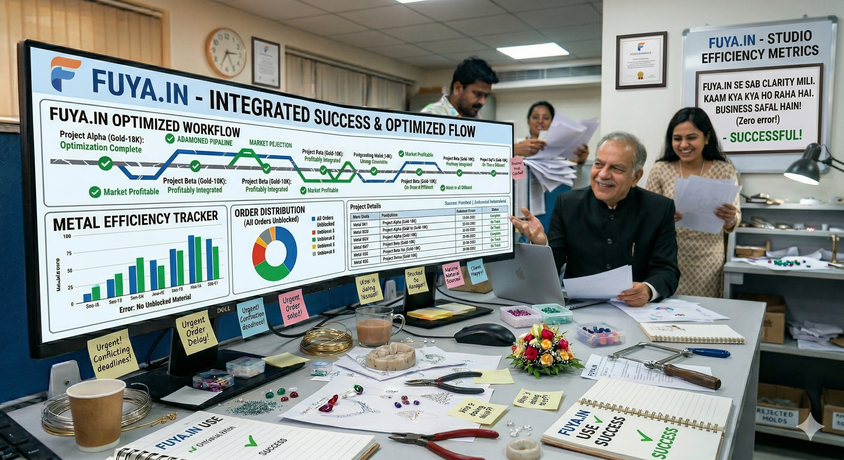 FUYA.IN provides detailed analytics on employee performance, workflow efficiency, delays, and output — enabling smarter decisions.
